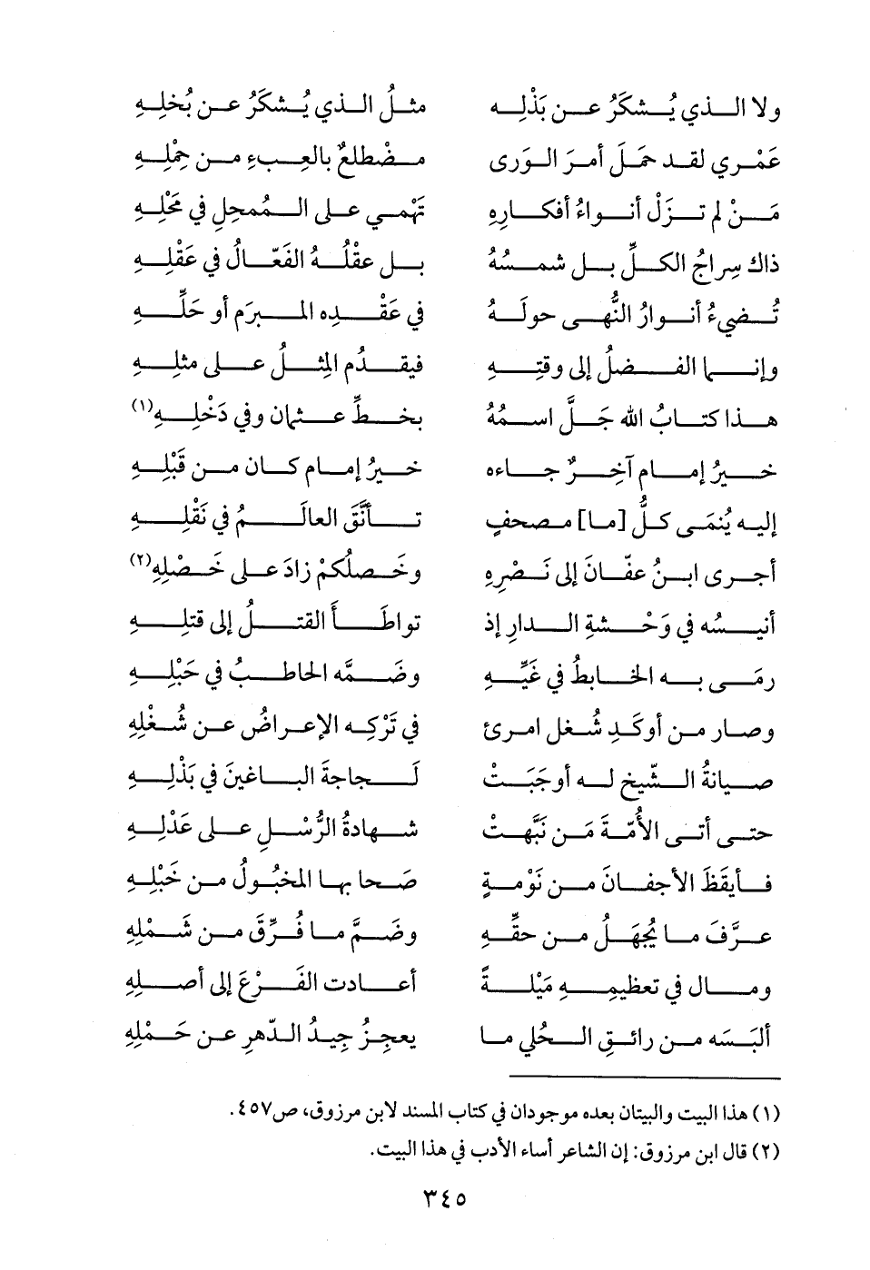 أجرى ابنُ عفانَ إلى نَصْرِهِ ... وخَصلُكمْ زادَ على خَصْلِهِ (¬2)