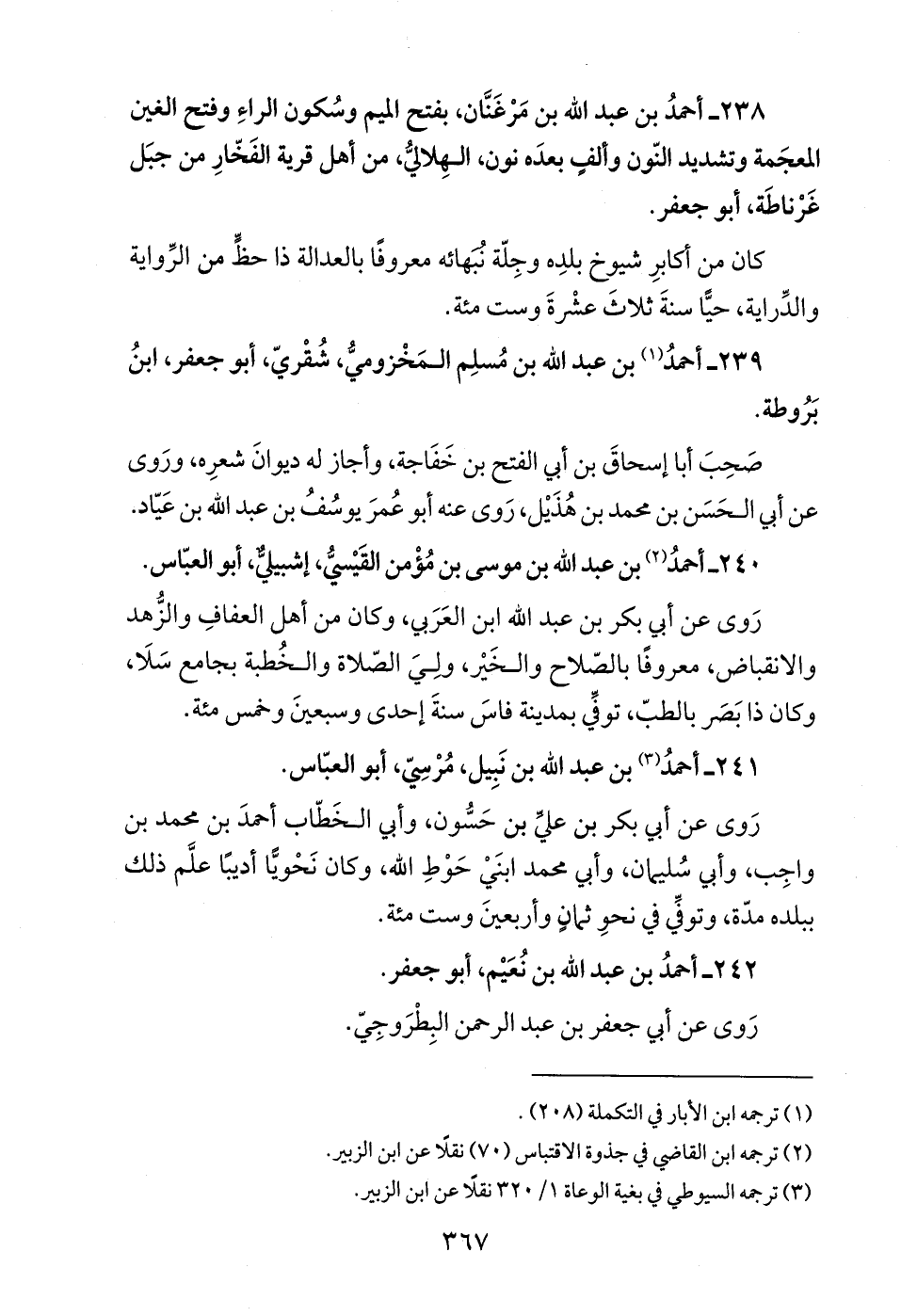 238 - أحمدُ بن عبد الله بن مَرْغَنَّان، بفتح الميم وسُكون الراءِ وفتح الغين المعجَمة وتشديد النّون وألفٍ بعدَه نون، الهِلاليُّ، من أهل قرية الفَخّارِ من جبَل غَرْناطَة، أبو جعفر.