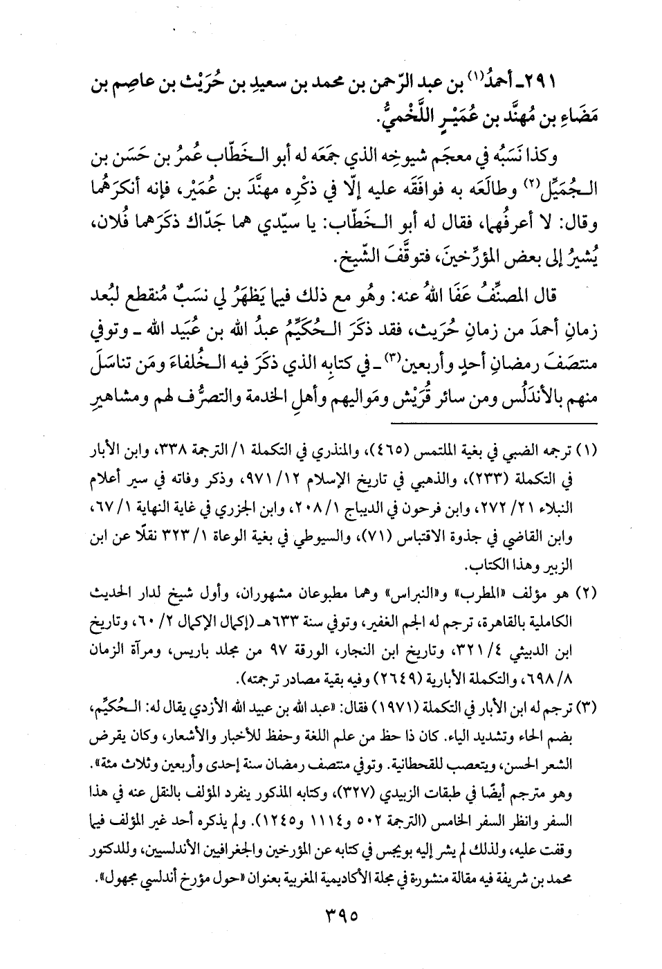 (¬3) ترجم له ابن الأبار في التكملة (1971) فقال: "عبد الله بن عبيد الله الأزدي يقال له: الحُكيِّم، بضم الحاء وتشديد الياء. كان ذا حظ من علم اللغة وحفظ للأخبار والأشعار، وكان يقرض الشعر الحسن، ويتعصب للقحطانية. وتوفي منتصف رمضان سنة إحدى وأربعين وثلاث مئة". وهو مترجم أيضًا في طبقات الزبيدي (327)، وكتابه المذكور ينفرد المؤلف بالنقل عنه في هذا السفر وانظر السفر الخامس (الترجمة 502 و 1114 و 1245). ولم يذكره أحد غير المؤلف فيما وقفت عليه، ولذلك لم يشر إليه بويجس في كتابه عن المؤرخين والجغرافيين الأندلسيين، وللدكتور محمد بن شريفة فيه مقالة منشورهة في مجلة الأكاديمية المغربية بعنوان "حول مؤرخ أندلسي مجهول".