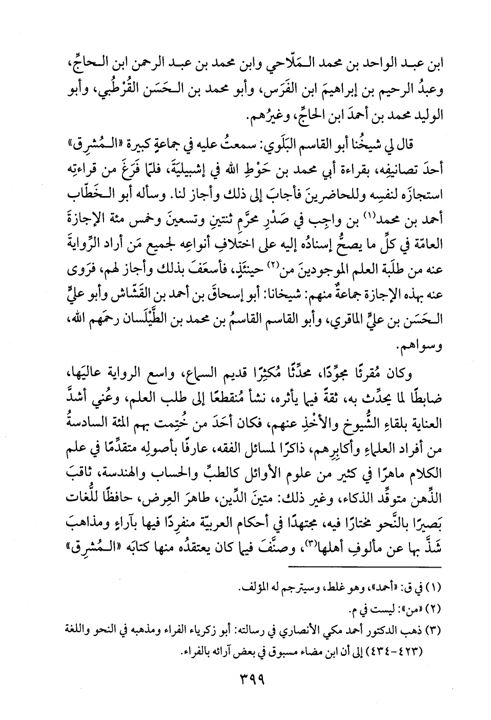 (¬3) ذهب الدكتور أحمد مكي الأنصاري في رسالته: أبو زكرياء الفراء ومذهبه في النحو واللغة (434 - 423) إلى أن ابن مضاء مسبوق في بعض آرائه بالفراء.