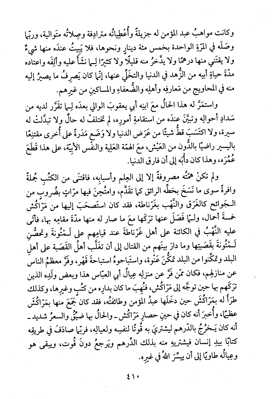 وكانت مواهبُ عبد المؤمن له جزيلةً وأُعْطِياتُه مترادِفة وصِلاتُه متَوالية، وربّما وصَلَه في المرّةِ الواحدة بخمس مئة دينارٍ ونحوها، فلا يَبِيتُ عندَه منها شيءٌ ولا يقتَني منها درهماً ولا يدَّخرُ منه قليلًا ولا كثيراً لِما نشَأَ عليه وألِفَه واعتاده مدّةَ حياةِ أبيه من الزُّهد في الدنيا والتخَلِّي عنها، إنّما كان يَصرِفُ ما يصيرُ إليه منه في المحاويج من مَعارفِه وأهلِه والضُّعفاءِ والمساكينِ من غيرِهم.