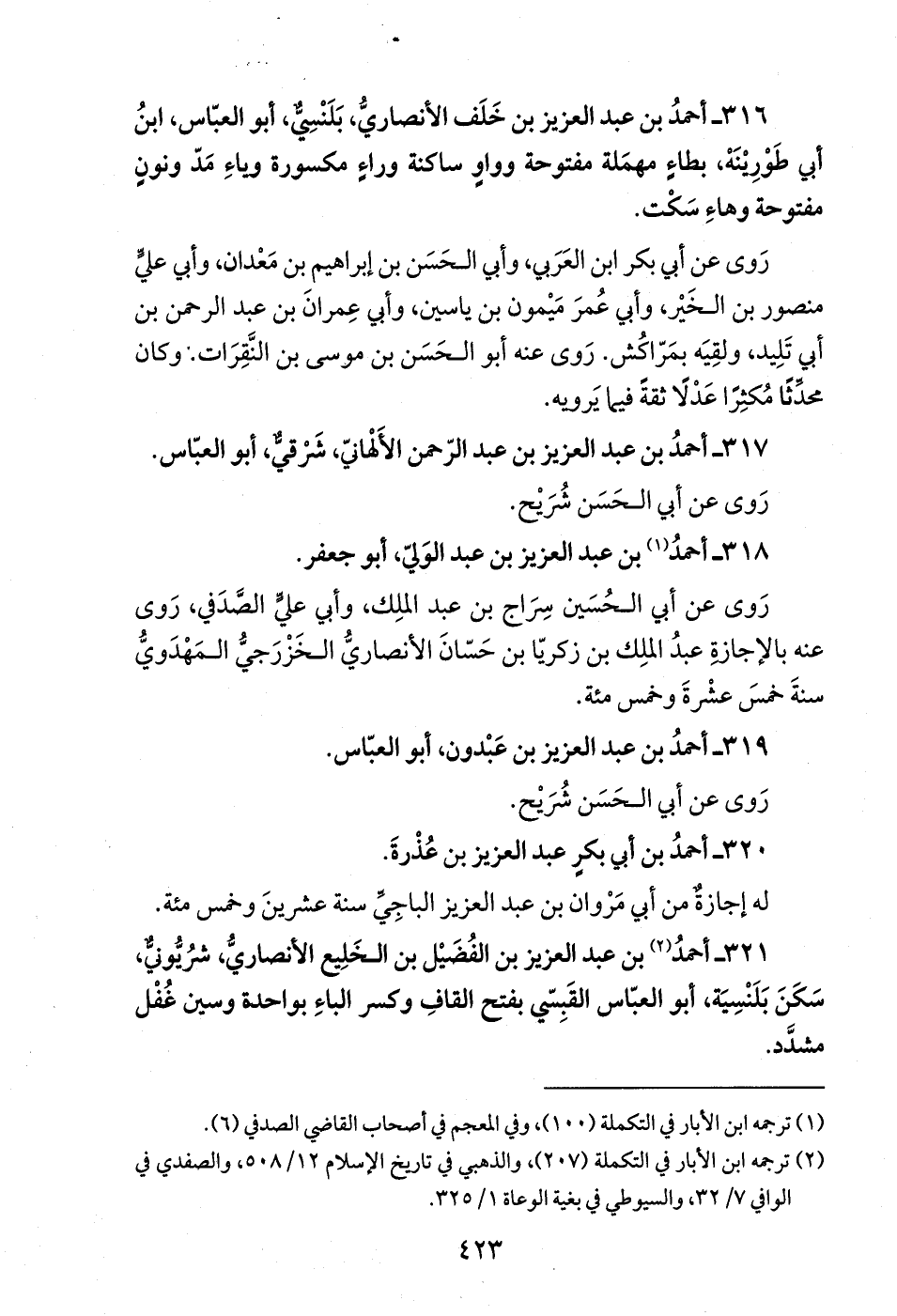316 - أحمدُ بن عبد العزيز بن خَلَف الأنصاريُّ، بَلَنْسِيٌّ، أبو العبّاس، ابنُ أبي طَوْريْنَهْ، بطاءٍ مهمَلة مفتوحة وواوٍ ساكنة وراءٍ مكسورة وياءِ مَدّ ونونٍ مفتوحة وهاءِ سَكْت.