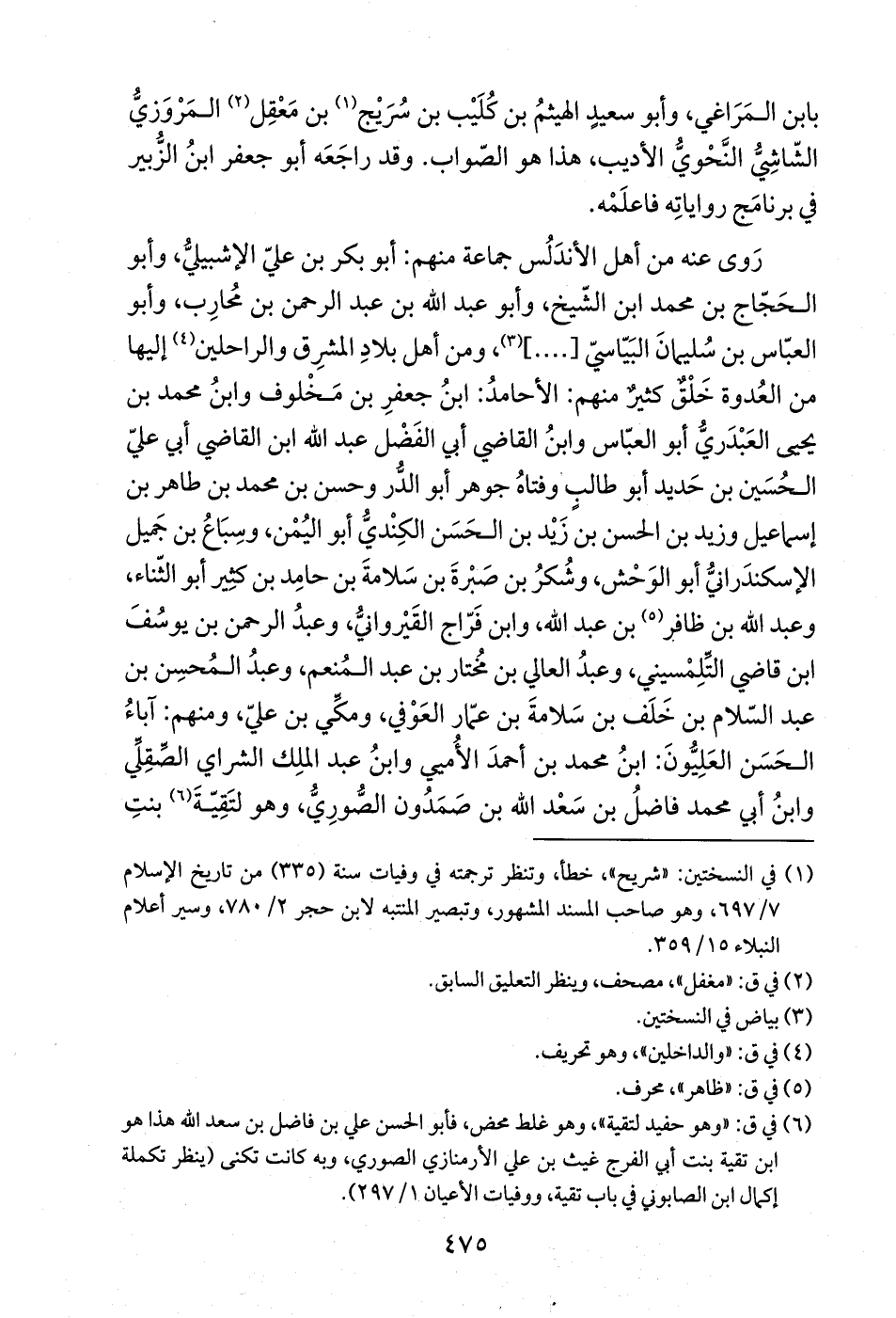 بابن المَراغي، وأبو سعيدٍ الهيثمُ بن كُلَيْب بن سُرَيْج (¬1) بن مَعْقِل (¬2) المَروَزيُّ الشّاشِيُّ النّحويُّ الأديب، هذا هو الصّواب. وقد راجَعَه أبو جعفر ابنُ الزُّبير في برنامَج رواياتِه فاعلَمْه.