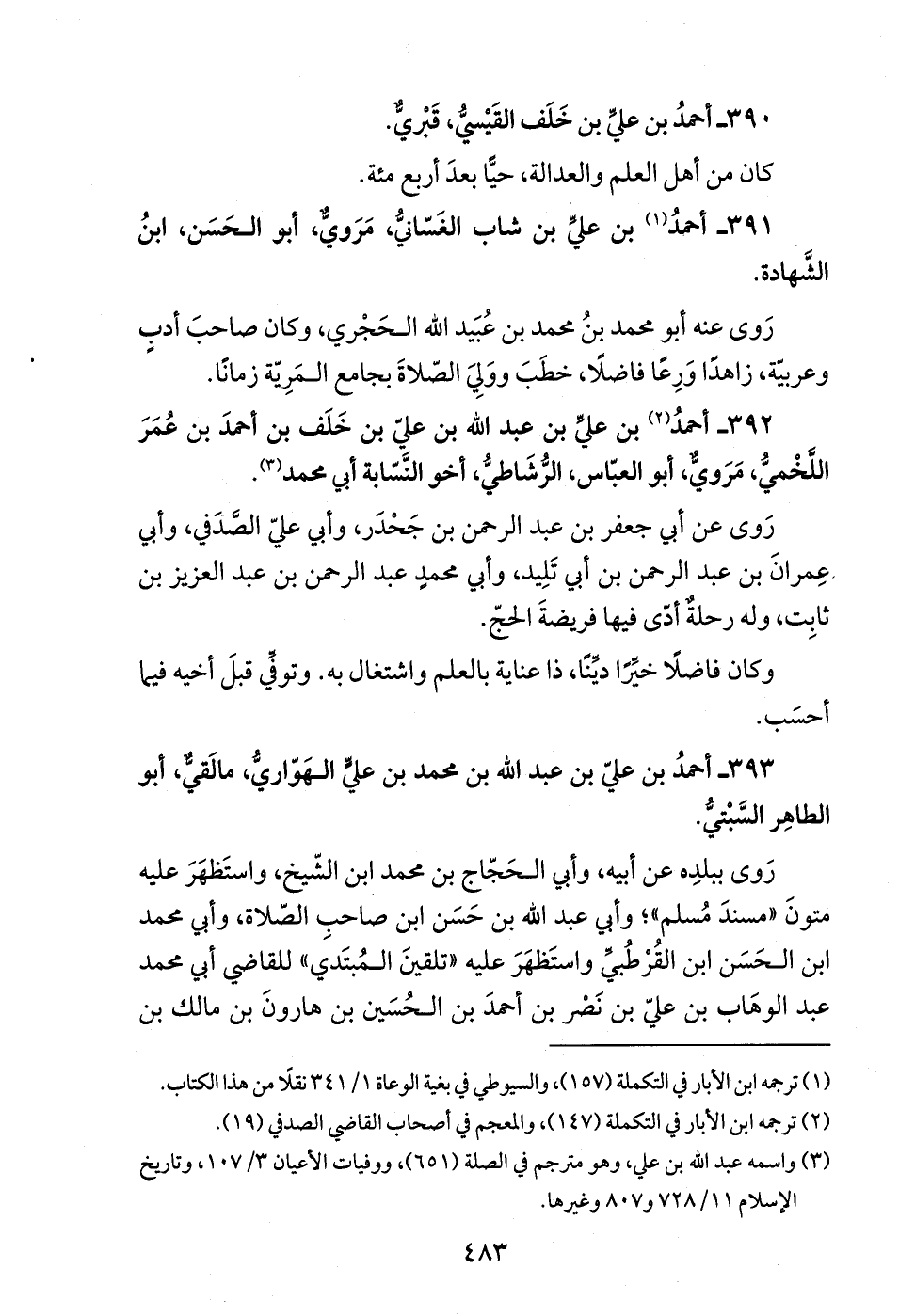 393 - أحمدُ بن عليّ بن عبد الله بن محمد بن عليٍّ الهَوّاريُّ، مالَقيٌّ، أبو الطاهِر السَّبْتيُّ.