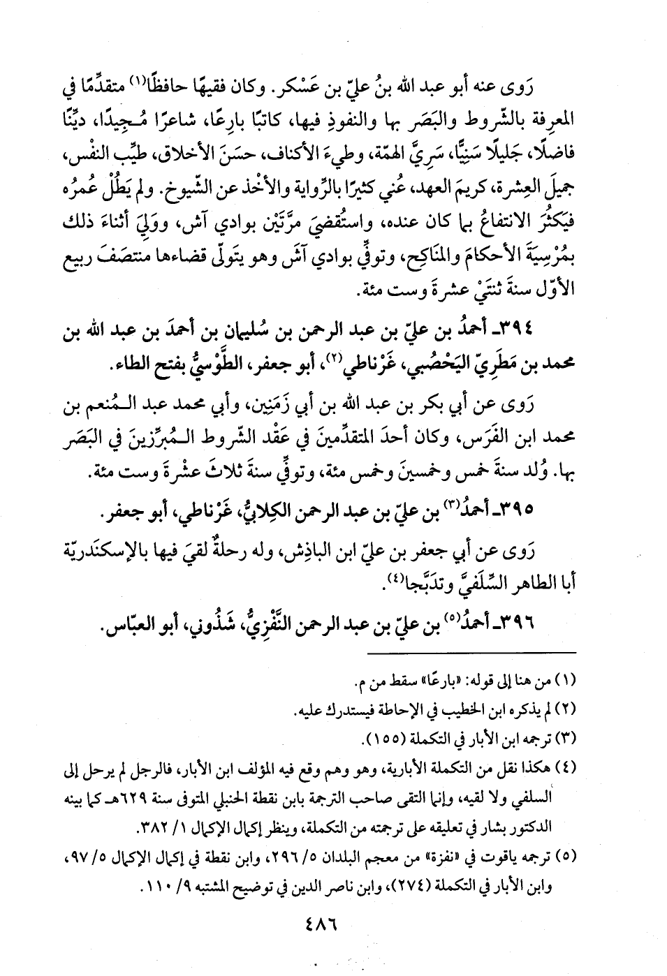 (¬4) هكذا نقل من التكملة الأبارية، وهو وهم وقع فيه المؤلف ابن الأبار، فالرجل لم يرحل إلى السلفي ولا لقيه، وإنما التقى صاحب الترجمة بابن نقطة الحنبلي المتوفى سنة 629 هـ كما بينه الدكتور بشار في تعليقه على ترجمته من التكملة، وينظر إكمال الإكمال 1/ 382.