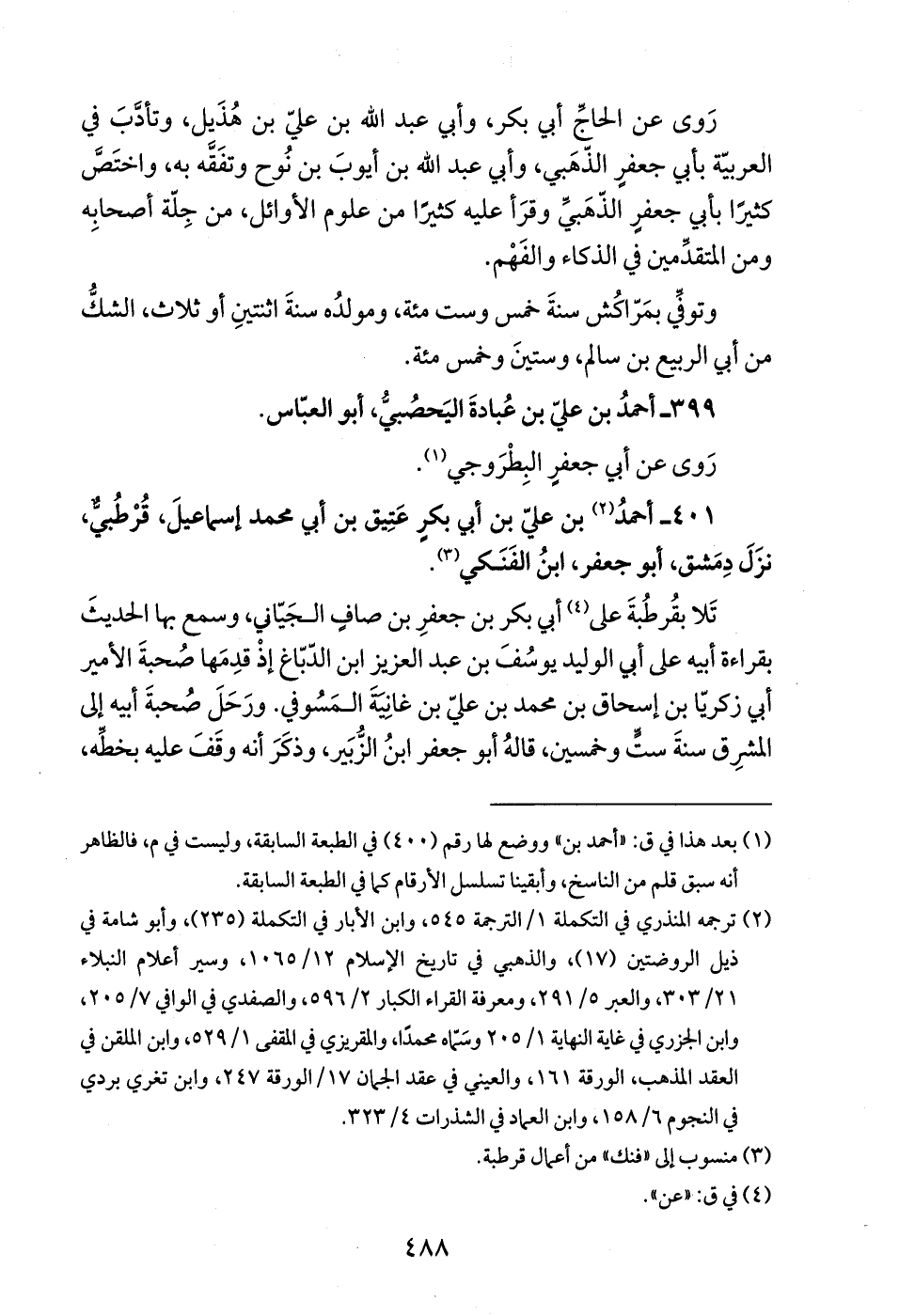 (¬1) بعد هذا في ق: "أحمد بن" ووضع لها رقم (400) في الطبعة السابقة، وليست في م، فالظاهر أنه سبق قلم من الناسخ، وأبقينا تسلسل الأرقام كما في الطبعة السابقة.