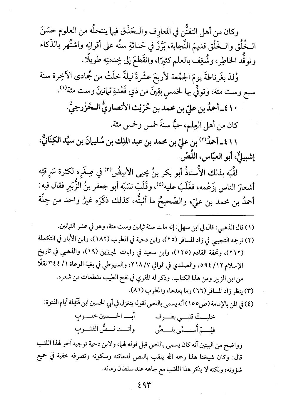 410 - أحمدُ بن عليّ بن محمد بن حُرَيْث الأنصاريُّ الخَزْرجيُّ.