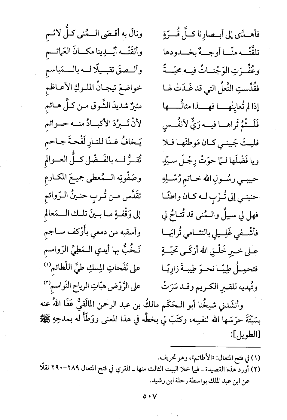 (¬2) أورد هذه القصيدة -فيما خلا البيت الثالث منها- المقري في فتح المتعال 289 - 290 نقلًا عن ابن عبد الملك بواسطة رحلة ابن رشيد.