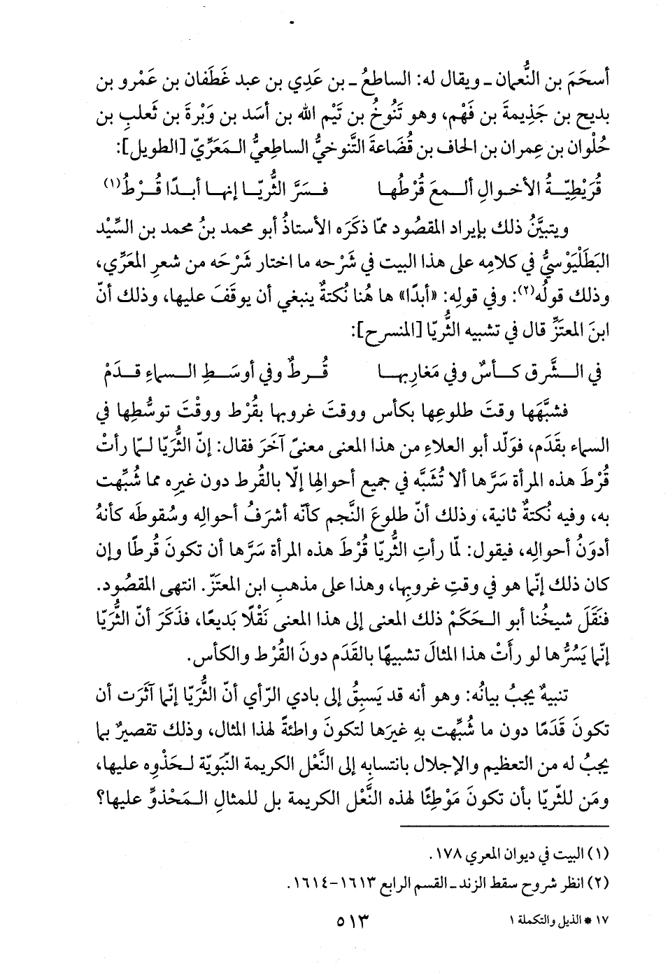 (¬2) انظر شروح سقط الزند - القسم الرابع 1613 - 1614.