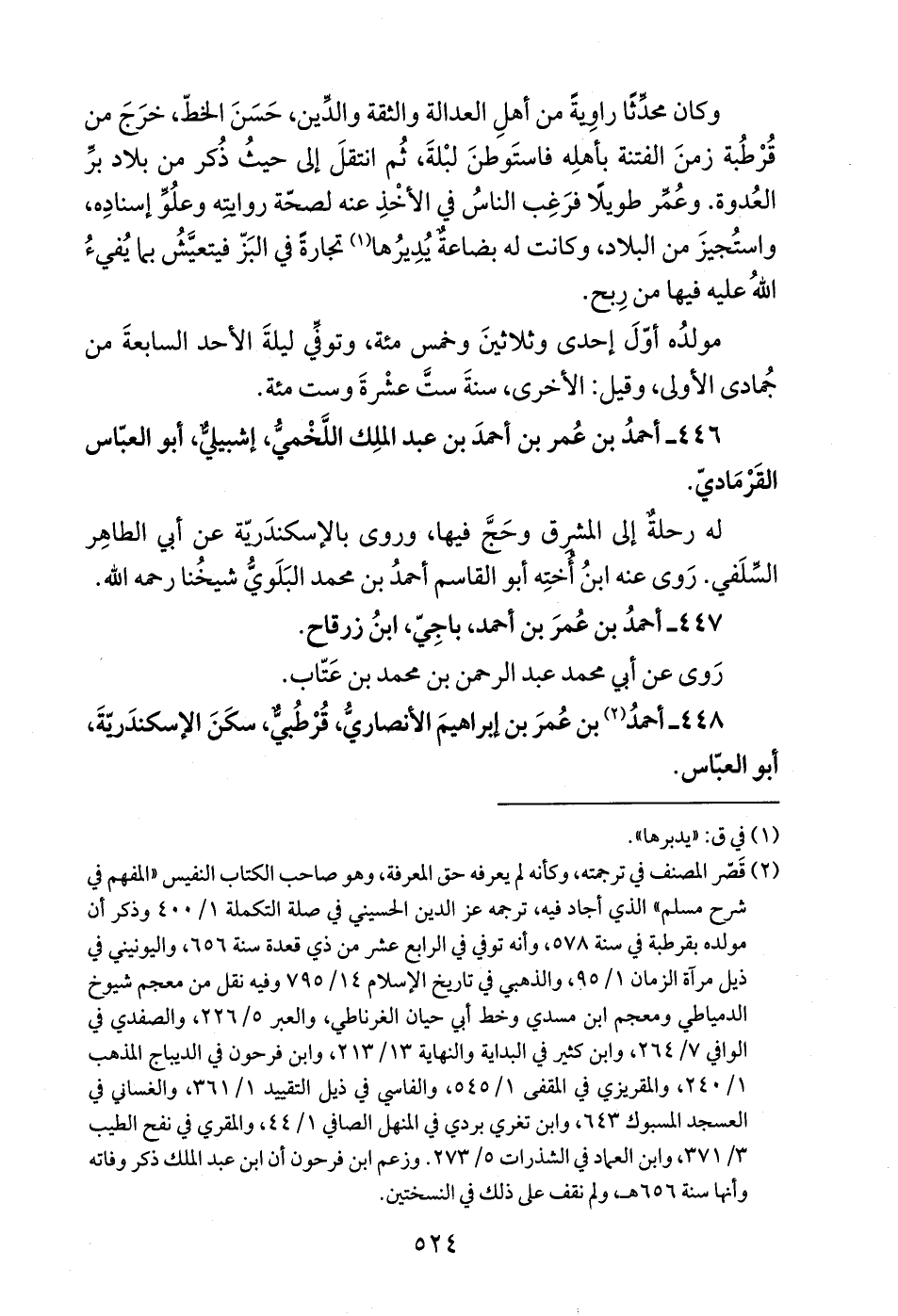 446 - أحمدُ بن عُمر بن أحمدَ بن عبد الملِك اللَّخْميُّ، إشبيليٌّ، أبو العبّاس القَرْمَاديّ.