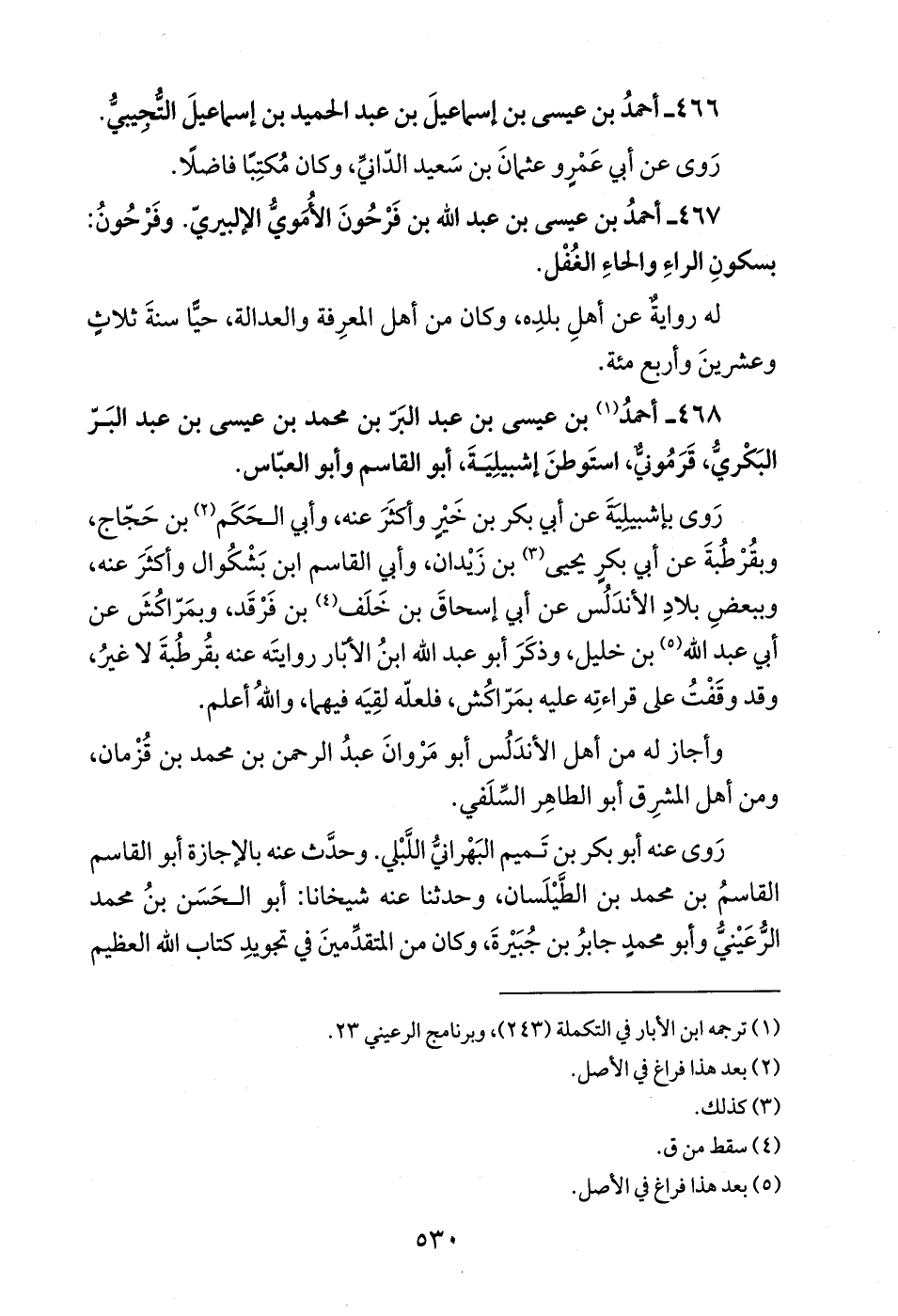 468 - أحمدُ (¬1) بن عيسى بن عبد البَرّ بن محمد بن عيسى بن عبد البَرّ البَكْريُّ، قَرَمُونيٌّ، استَوطنَ إشبيلِيَةَ، أبو القاسم وأبو العبّاس.