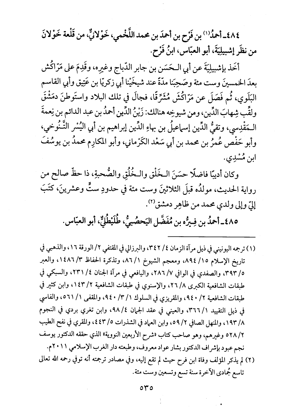 485 - أحمدُ بن فِيرّه بن مُفَضَّل اليَحصُبيُّ، طُلَيْطُليٌّ، أبو العبّاس.