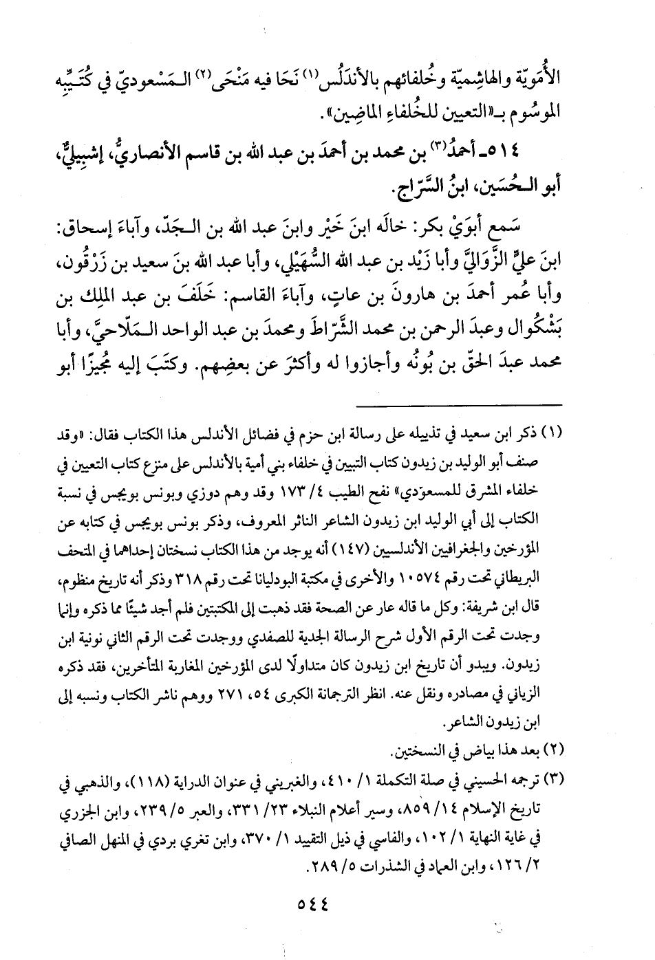 514 - أحمدُ (¬3) بن محمد بن أحمدَ بن عبد الله بن قاسم الأنصاريُّ، إشبِيليٌّ، أبو الحُسَين، ابنُ السَّرِّاج.