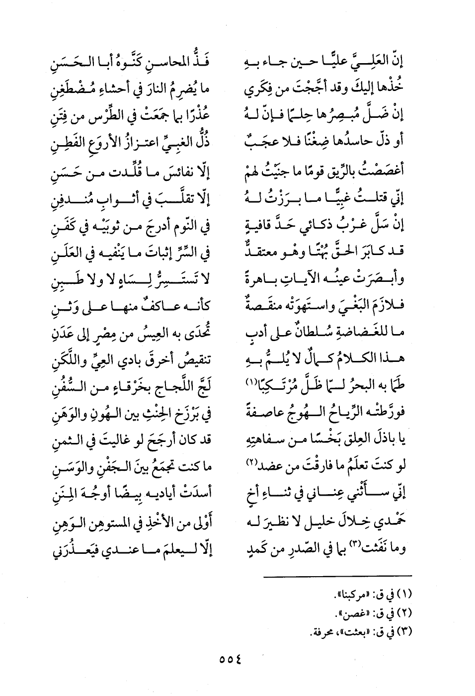 أغصَصتُ بالرِّيق قوماً ما جنَيْتُ لهمْ ... إلّا نفائسَ ما قُلِّدت من حَسَنِ