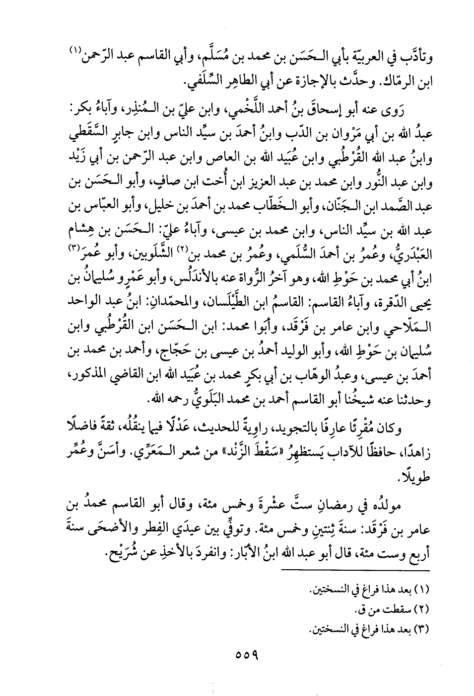 رَوى عنه أبو إسحاقَ بنُ أحمد اللَّخْمي، وابن عليّ بن المُنذِر، وآباءُ بكر: عبدُ الله بن أبي مَرْوان بن الدّب وابنُ أحمدَ بن سيِّد الناس وابن جابرٍ السَّقَطي وابنُ عبد الله القُرْطُبي وابن عُبَيد الله بن العاص وابن عبد الرّحمن بن أبي زَيْد وابن عبد النُّور وابن محمد بن عبد العزيز ابن أُخت ابن صافٍ، وأبو الحَسَن بن عبد الصَّمد ابن الجَنّان، وأبو الخَطّاب محمد بن أحمدَ بن خليل، وأبو العبّاس بن عبد الله بن سيِّد الناس، وابن محمد بن عيسى، وآباءُ عليّ: الحَسَن بن هِشام العَبْدَريُّ، وعُمرُ بن أحمدَ السُّلَمي، وعُمرُ بن محمد بن (¬2) الشَّلَوبين، وأبو عُمرَ (¬3) ابنُ أبي محمد بن حَوْطِ الله، وهو آخرُ الرُّواة عنه بالأندَلُس، وأبو عَمْرٍو سُليمانُ بن يحيى الدّقرة، وآباءُ القاسم: القاسمُ ابن الطَّيْلَسان، والمحمّدانِ: ابنُ عبد الواحد المَلّاحي وابن عامر بن فَرْقَد، وأبَوا محمد: ابن الحَسَن ابن القُرْطُبي وابن سُليمان بن حَوْطِ الله، وأبو الوليد أحمدُ بن عيسى بن حَجّاج، وأحمد بن محمد بن أحمدَ بن عيسى، وعبدُ الوهّاب بن أبي بكرٍ محمد بن عُبَيد الله ابن القاضي المذكور، وحدثنا عنه شيخُنا أبو القاسم أحمد بن محمد البَلَويُّ رحمه الله.