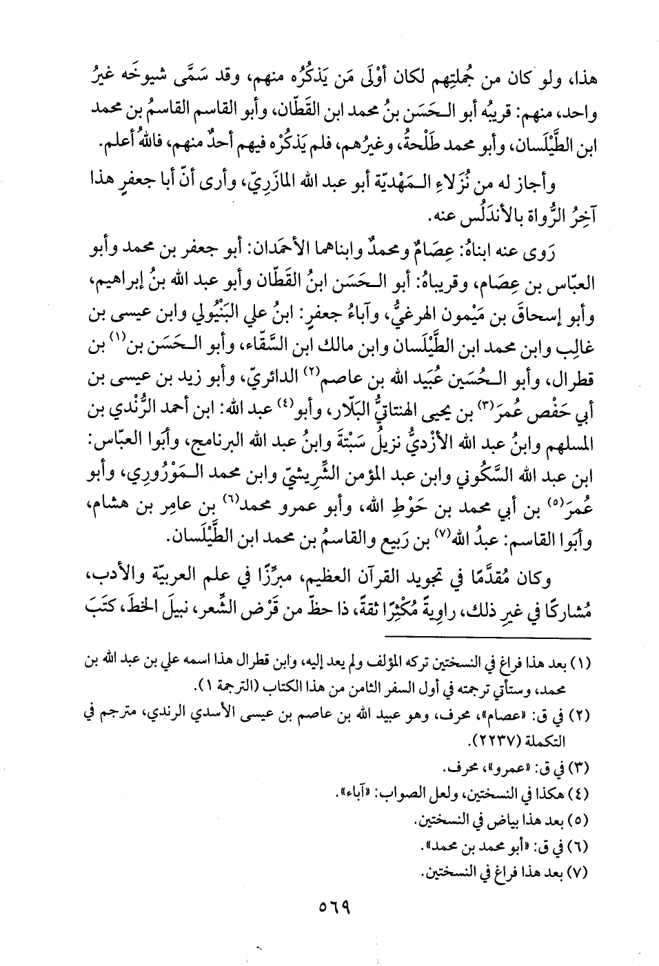 (¬1) بعد هذا فراغ في النسختين تركه المؤلف ولم يعد إليه، وابن قطرال هذا اسمه علي بن عبد الله بن محمد، وستأتي ترجمته في أول السفر الثامن من هذا الكتاب (الترجمة 1).