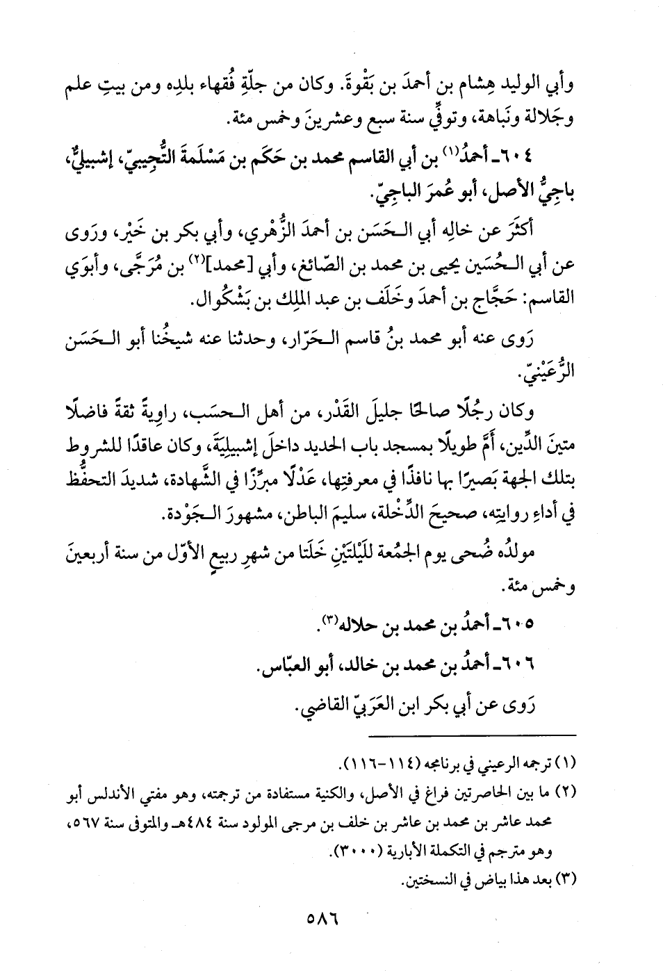 (¬2) ما بين الحاصرتين فراغ في الأصل، والكنية مستفادة من ترجمته، وهو مفتي الأندلس أبو محمد عاشر بن محمد بن عاشر بن خلف بن مرجى المولود سنة 484 هـ والمتوفى سنة 567، وهو مترجم في التكملة الأبارية (3000).