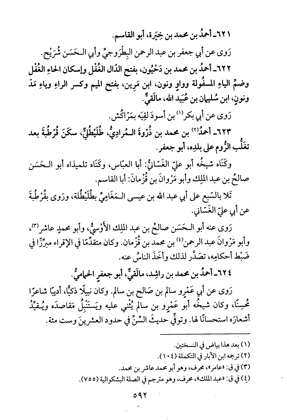 623 - أحمدُ (¬2) بن محمد بن ذُرْوةَ المُرادِيُّ، طُلَيْطُليٌّ، سكَنَ قُرْطُبةَ بعد تغَلُّب الرُّوم على بلدِه، أبو جعفر.