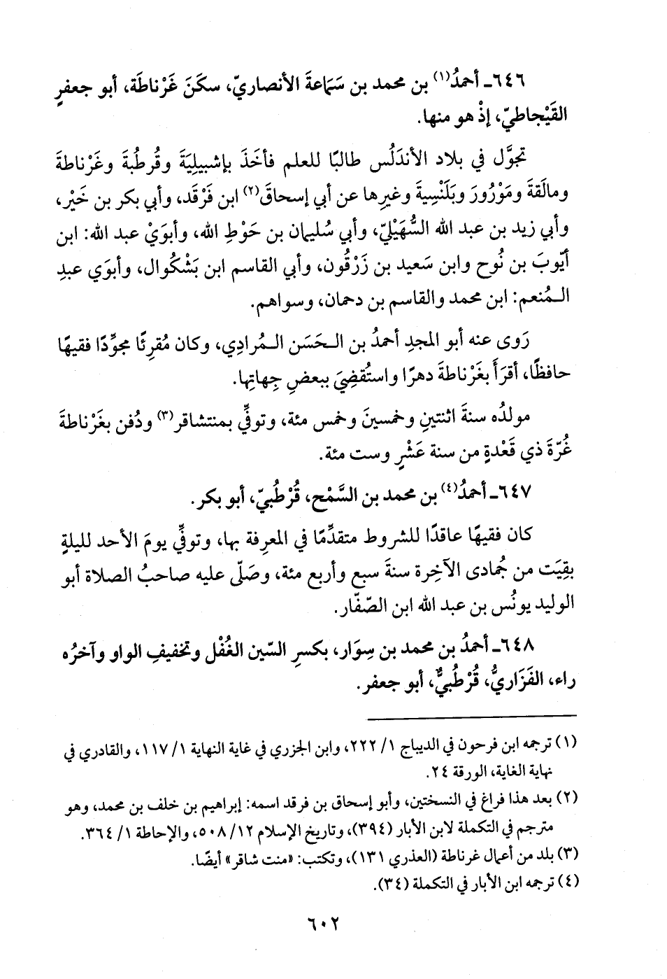 648 - أحمدُ بن محمد بن سِوَار، بكسرِ السّين الغُفْل وتخفيفِ الواو وآخرُه راء، الفَزَاريُّ، قُرْطُبيٌّ، أبو جعفر.