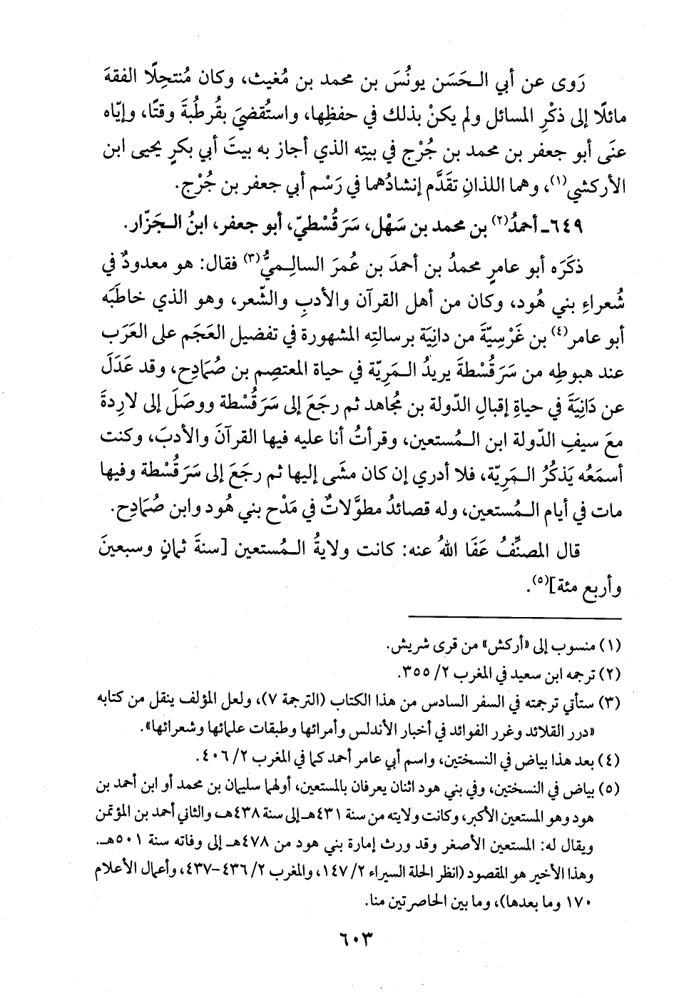 649 - أحمدُ (¬2) بن محمد بن سَهْل، سَرَقُسْطيّ، أبو جعفر، ابنُ الجَزّار.
