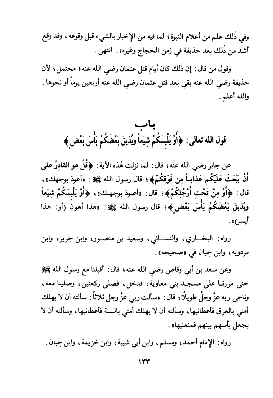 قول الله تعالى: {أَوْ يَلْبِسَكُمْ شِيَعًا وَيُذِيقَ بَعْضَكُمْ بَأْسَ بَعْضٍ}