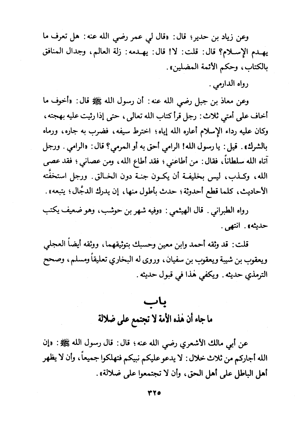 ما جاء أن هذه الأمة لا تجتمع على ضلالة