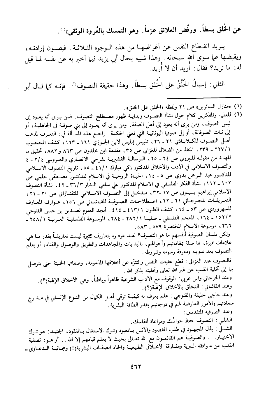 الثَّانِي: إِسْبَالُ الْخُلُقِ عَلَى الْخَلْقِ بَسْطًا، وَهَذَا حَقِيقَةُ التَّصَوُّفِ، فَإِنَّهُ كَمَا قَالَ أَبُو