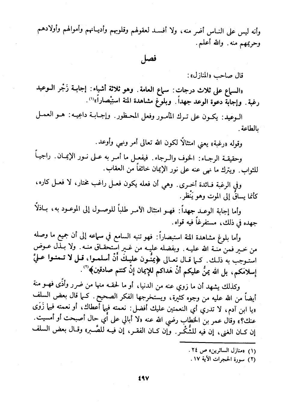 قَالَ صَاحِبُ الْمَنَازِلِ: