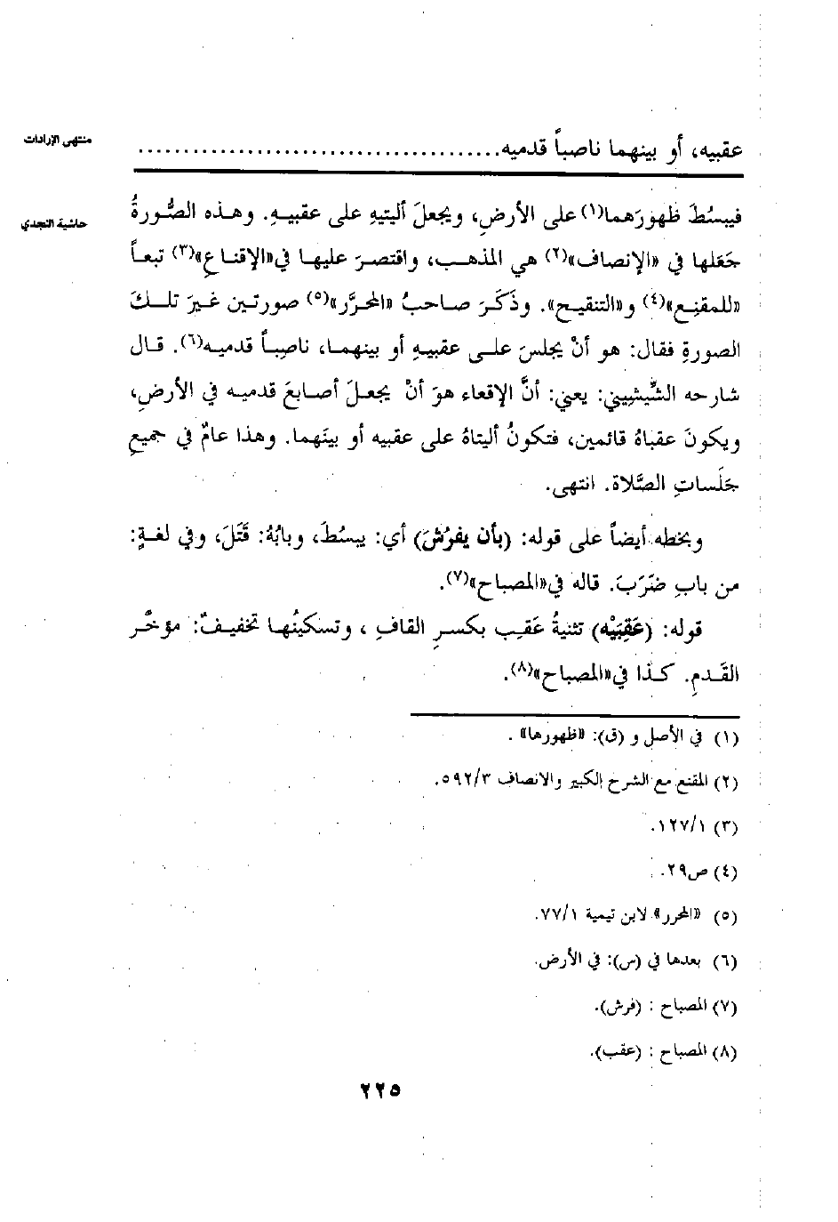 عَقِبَيْهِ، أَوْبَيْنَهُمَا نَاصِبًا قَدَمَيْهِ