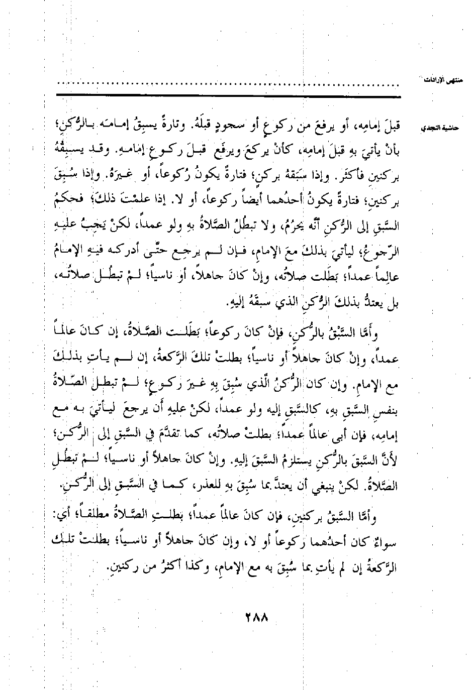 وأما السبق بركنين، فإن كان عالما عمدا؛ بطلت الصلاة؛ أي: سواءٌ كان أحدهما ركوعا أو لا، وإن كان جاهلاً أو ناسيا؛ بطلت تلك الركعة إن لم يأت بما سبق به مع الإمام، وكذا أكثر من ركنين.