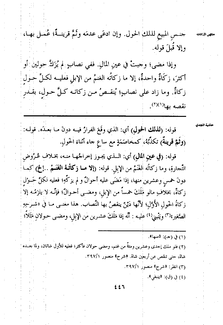 جِنْسِ الْمَبِيعِ لِذَلِكَ الْحَوْلِ وَإِنْ اُدْعِي عَدَمَهُ وَثَمَّ قَرِينَةُ عُمِلَ بِهَا وَإِلَّا قُبِلَ قَوْلُهُ وَإِذَا مَضَى وَجَبَتْ فِي عَيْنِ الْمَالِ فَفِي نِصَابٍ لَمْ يُزَكِّ حَوْلَيْنِ أَوْ أَكْثَرَ زَكَاةً وَاحِدَةً إلَّا مَا زَكَاتُهُ الْغَنَمُ مِنْ الْإِبِلِ فَعَلَيْهِ لِكُلِّ حَوْلٍ زَكَاةٌ وَمَا زَادَ عَلَى نِصَابٍ يُنْقَصُ مِنْ زَكَاتِهِ كُلَّ حَوْلٍ بِقَدْرِ نَقْصِهِ بِهَا