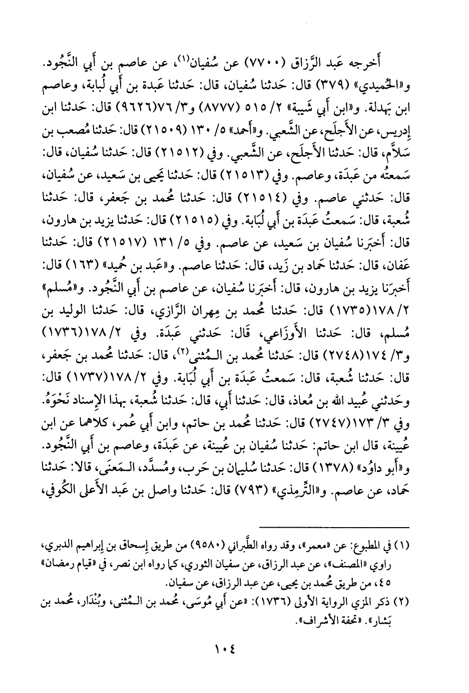 أخرجه عبد الرزاق (٧٧٠٠) عن مَعمر (¬١)، عن عاصم بن أبي النجود. و «الحميدي» (٣٧٩) قال: حدثنا سفيان، قال: حدثنا عبدة بن أبي لبابة، وعاصم بن بهدلة. و «ابن أبي شيبة» (٨٧٧٧) و ٣/ ٧٦ (٩٦٢٦) قال: حدثنا ابن إدريس، عن الأجلح، عن الشعبي. و «أحمد» ٥/ ١٣٠ (٢١٥٠٩) قال: حدثنا مصعب بن سلام، قال: حدثنا الأجلح، عن الشعبي. وفي (٢١٥١٢) قال: حدثنا سفيان، قال: سمعته من عبدة، وعاصم. وفي (٢١٥١٣) قال: حدثنا يحيى بن سعيد، عن سفيان، قال: حدثني عاصم. وفي (٢١٥١٤) قال: حدثنا محمد بن جعفر، قال: حدثنا شعبة، قال: سمعت عبدة بن أبي لبابة. وفي (٢١٥١٥) قال: حدثنا يزيد بن هارون، قال: أخبرنا سفيان بن سعيد، عن عاصم. وفي ٥/ ١٣١ (٢١٥١٧) قال: حدثنا عفان، قال: حدثنا حماد بن زيد، قال: حدثنا عاصم. و «عَبد بن حُميد» (١٦٣) قال: أخبرنا يزيد بن هارون، قال: أخبرنا سفيان، عن عاصم بن أبي النجود. و «مسلم» ٢/ ١٧٨ (١٧٣٥) قال: حدثنا محمد بن مِهران الرازي، قال: حدثنا الوليد بن مسلم، قال: حدثنا الأوزاعي، قال: حدثني عبدة. وفي ٢/ ١٧٨ (١٧٣٦) و ٣/ ١٧٤ (٢٧٤٨) قال: حدثنا محمد بن المثنى (¬٢)، قال: حدثنا محمد بن جعفر، قال: حدثنا شعبة، قال: سمعت عبدة بن أبي لبابة. وفي ٢/ ١٧٨ (١٧٣٧) قال: وحدثني عُبيد الله بن معاذ، قال: حدثنا أبي، قال: حدثنا شعبة، بهذا الإسناد نحوه. وفي ٣/ ١٧٣ (٢٧٤٧) قال: حدثنا محمد بن حاتم، وابن أبي عمر، كلاهما عن ابن عُيينة، قال ابن حاتم: حدثنا سفيان بن عُيينة، عن عبدة، وعاصم بن أبي النجود. و «أَبو داود» (١٣٧٨) قال: حدثنا سليمان بن حرب، ومُسَدَّد، المَعنَى، قالا: حدثنا حماد، عن عاصم.