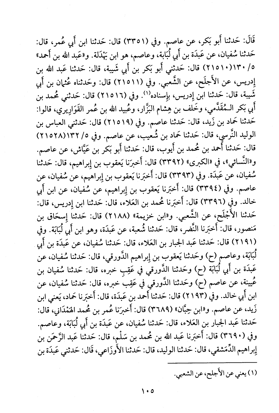 وفي (٢١٩٣) قال: حدثنا أحمد بن عَبدة، قال: أخبرنا حماد، يعني ابن زيد، عن عاصم. و «ابن حِبَّان» (٣٦٨٩) قال: أخبرنا عمر بن محمد الهمداني، قال: حدثنا عبد الجبار بن العلاء، قال: حدثنا سفيان، عن عبدة بن أبي لبابة، وعاصم. وفي (٣٦٩٠) قال: أخبرنا عبد الله بن محمد بن سَلم، قال: حدثنا عبد الرَّحمَن بن إبراهيم الدمشقي، قال: حدثنا الوليد، قال: حدثنا الأوزاعي، قال: حدثني عبدة بن