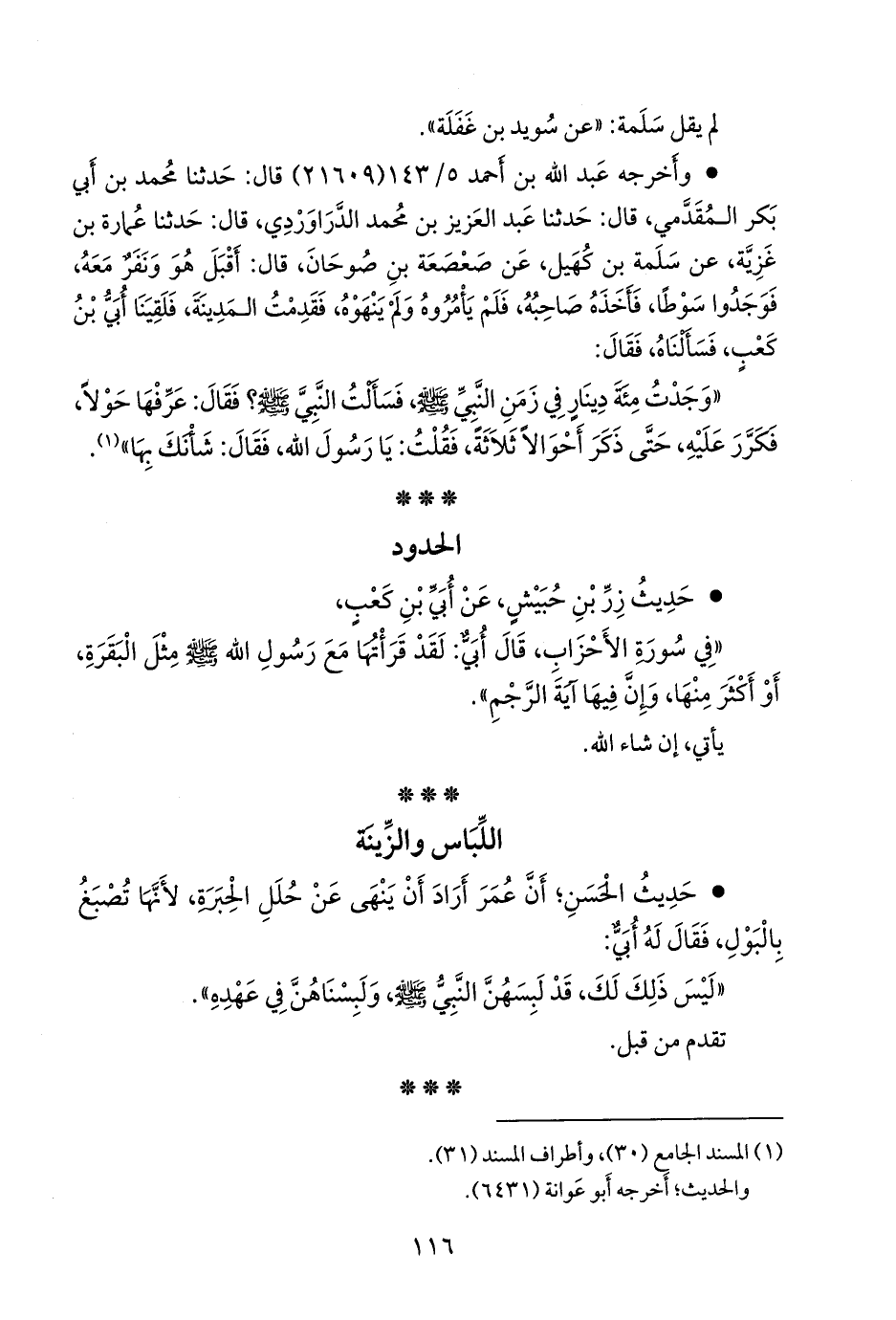- حديث زِرّ بن حُبَيش، عن أُبي بن كعب،