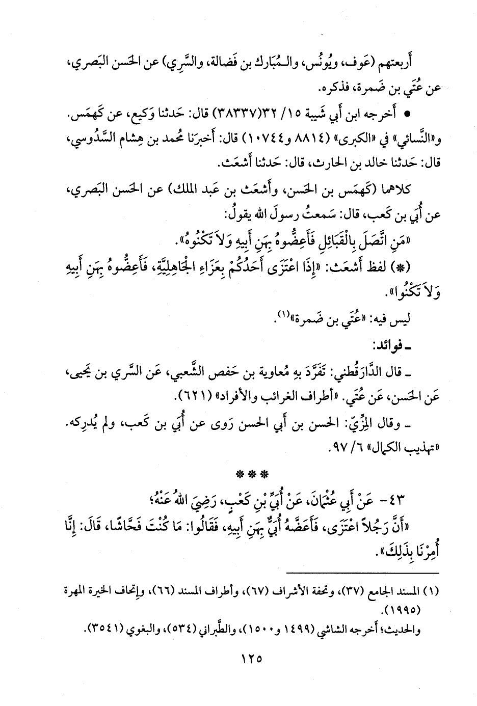٤٣ - عن أبي عثمان، عن أُبي بن كعب، رضي الله عنه؛