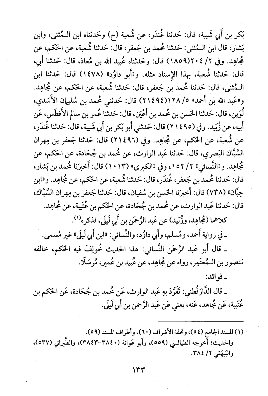 - قال الدارقُطني: تفرد به عبد الوارث، عن محمد بن جحادة، عن الحكم بن عتيبة، عن مجاهد، عنه، يعني عن عبد الرَّحمَن بن أبي ليلى.