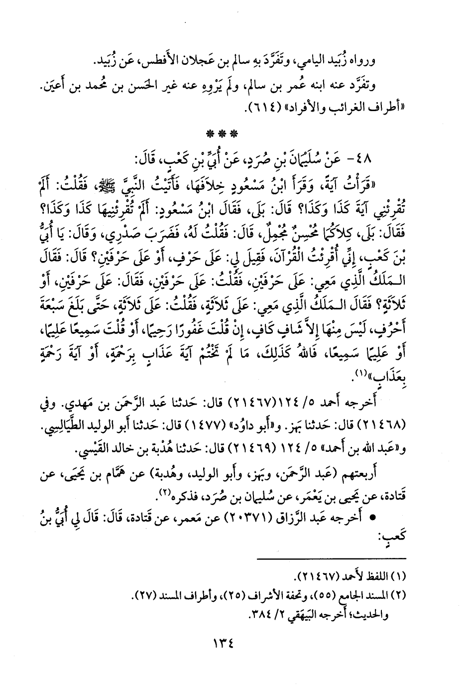 ٤٨ - عن سليمان بن صُرَد، عن أُبي بن كعب، قال: