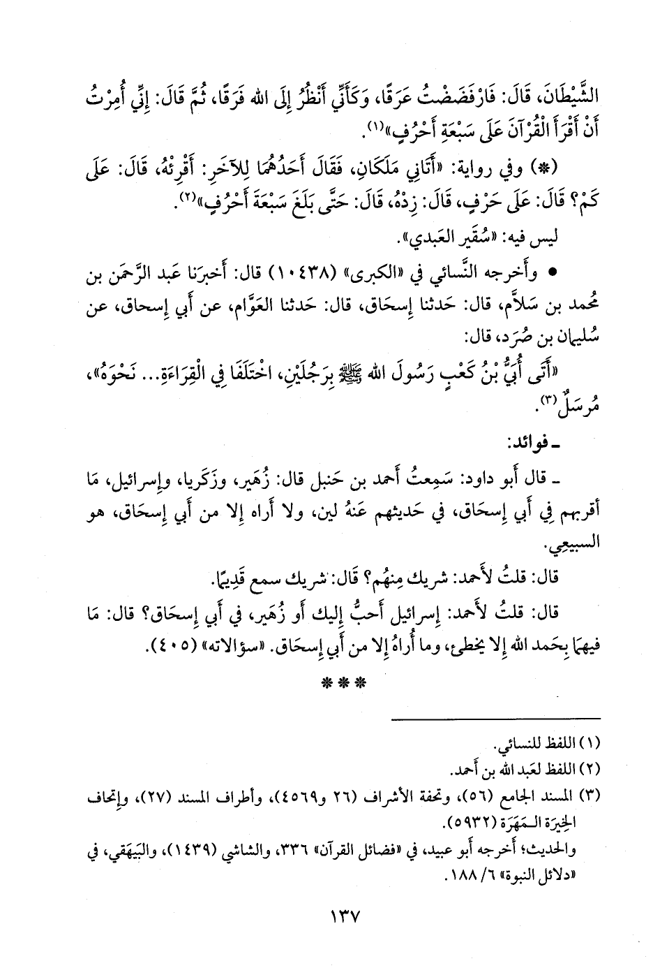 «أتى أُبي بن كعب رسول الله صَلى الله عَليه وسَلم برجلين، اختلفا في القراءة، نَحوَه»، مرسل (¬٢).