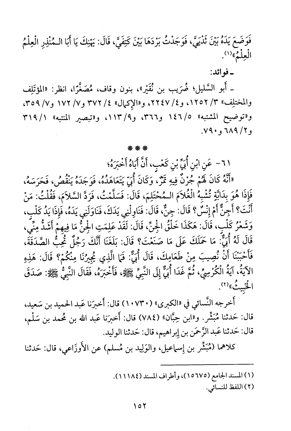 ٦١ - عن ابن أُبي بن كعب، أن أباه أخبره؛