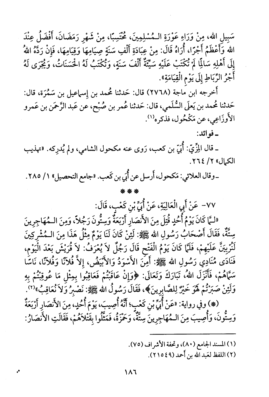 - وقال العلائي: مَكحول، أَرسل عن أُبَي بن كعب. «جامع التحصيل» ١/ ٢٨٥.