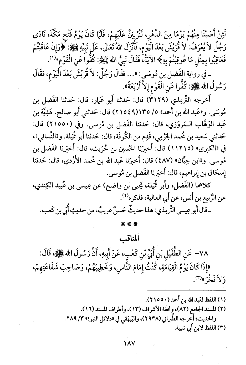 ٧٨ - عن الطفيل بن أُبي بن كعب، عن أبيه، أن رسول الله صَلى الله عَليه وسَلم قال: