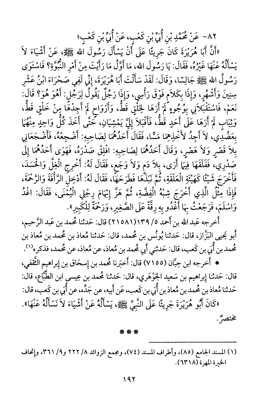 ٨٢ - عن محمد بن أُبي بن كعب، عن أُبي بن كعب؛