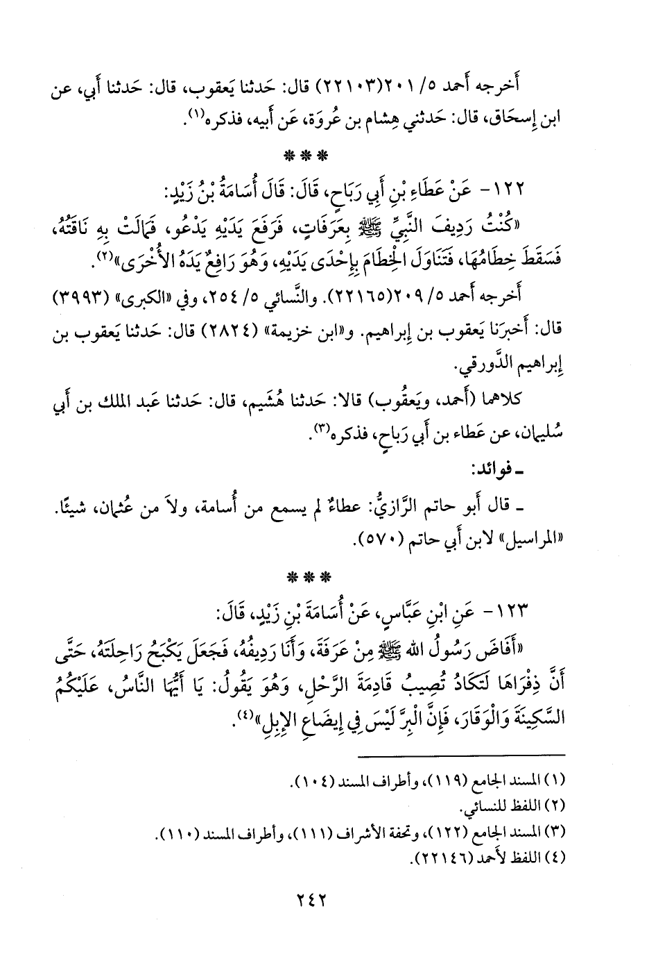 ١٢٢ - عن عطاء بن أبي رباح، قال: قال أُسامة بن زيد:
