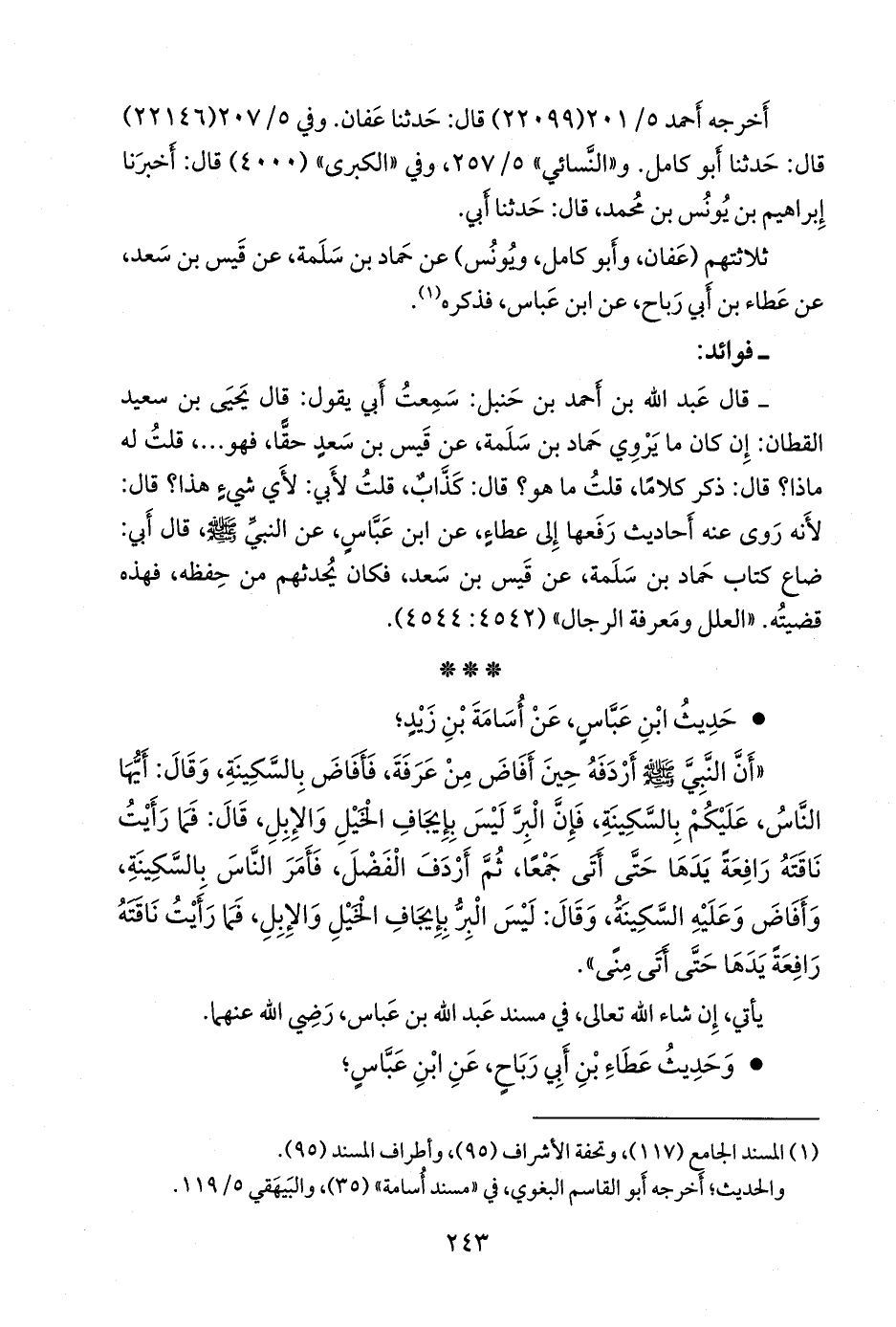 ١٢٣ م- عن عبد الله بن عباس، عن أُسامة بن زيد؛