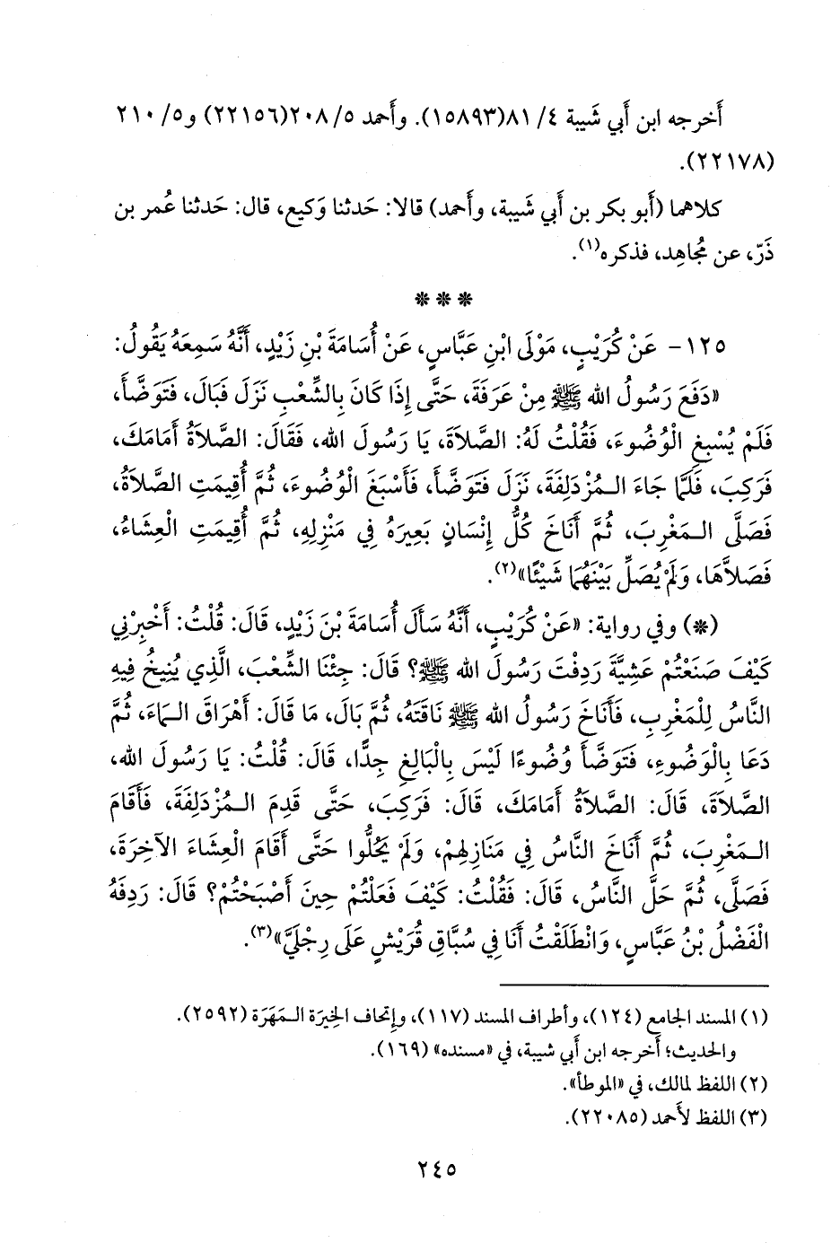 ١٢٥ - عن كُريب مولى ابن عباس، عن أُسامة بن زيد، أنه سمعه يقول: