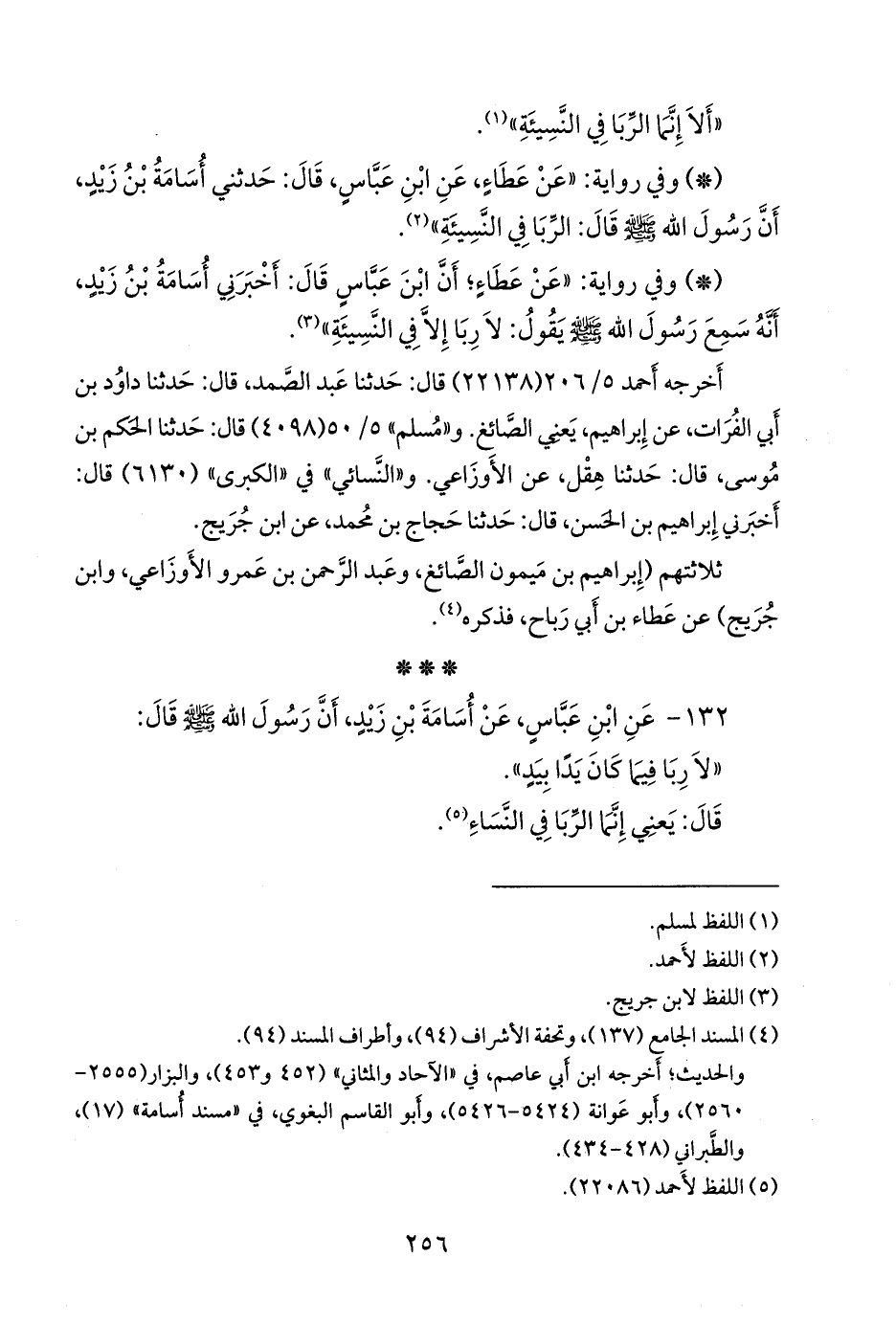 ١٣٢ - عن عبد الله بن عباس، عن أُسامة بن زيد، أن رسول الله صَلى الله عَليه وسَلم قال:
