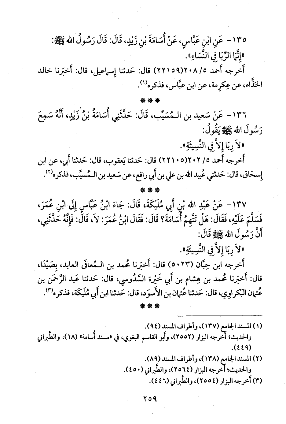 ١٣٥ - عن عبد الله بن عباس، عن أُسامة بن زيد، قال: قال رسول الله صَلى الله عَليه وسَلم:
