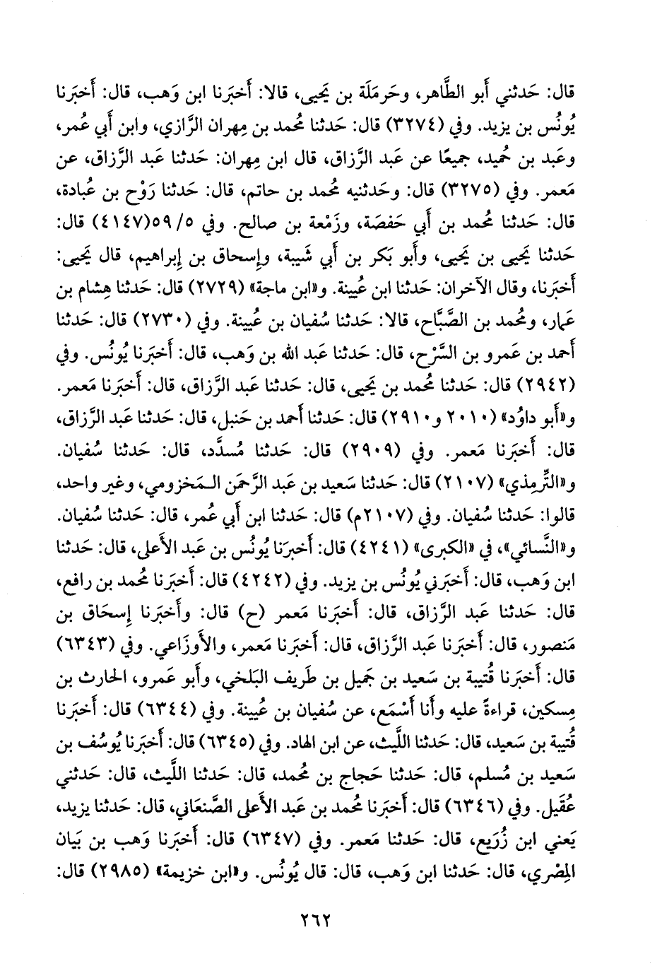 حدثنا محمد بن يحيى، قال: حدثنا عبد الرزاق، قال: أخبرنا مَعمَر. و «ابن حِبَّان» (٥١٤٩) قال: أخبرنا ابن قتيبة، قال: حدثنا حَرملة بن يحيى، قال: حدثنا ابن وهب، قال: أخبرنا يونس. وفي (٦٠٣٣) قال: أخبرنا أَبو يَعلى، قال: حدثنا أَبو خيثمة، قال: حدثنا ابن عُيينة.