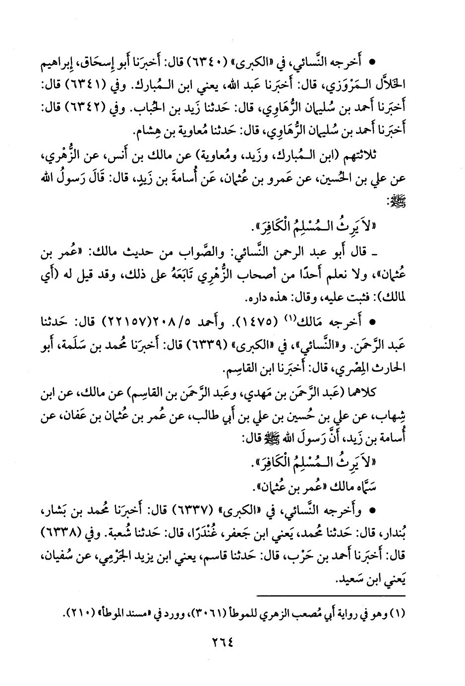 ثلاثتهم (ابن المبارك، وزيد، ومعاوية) عن مالك بن أنس، عن الزُّهْري، عن علي بن الحسين، عن عَمرو بن عثمان، عن أُسامة بن زيد، قال: قال رسول الله صَلى الله عَليه وسَلم: