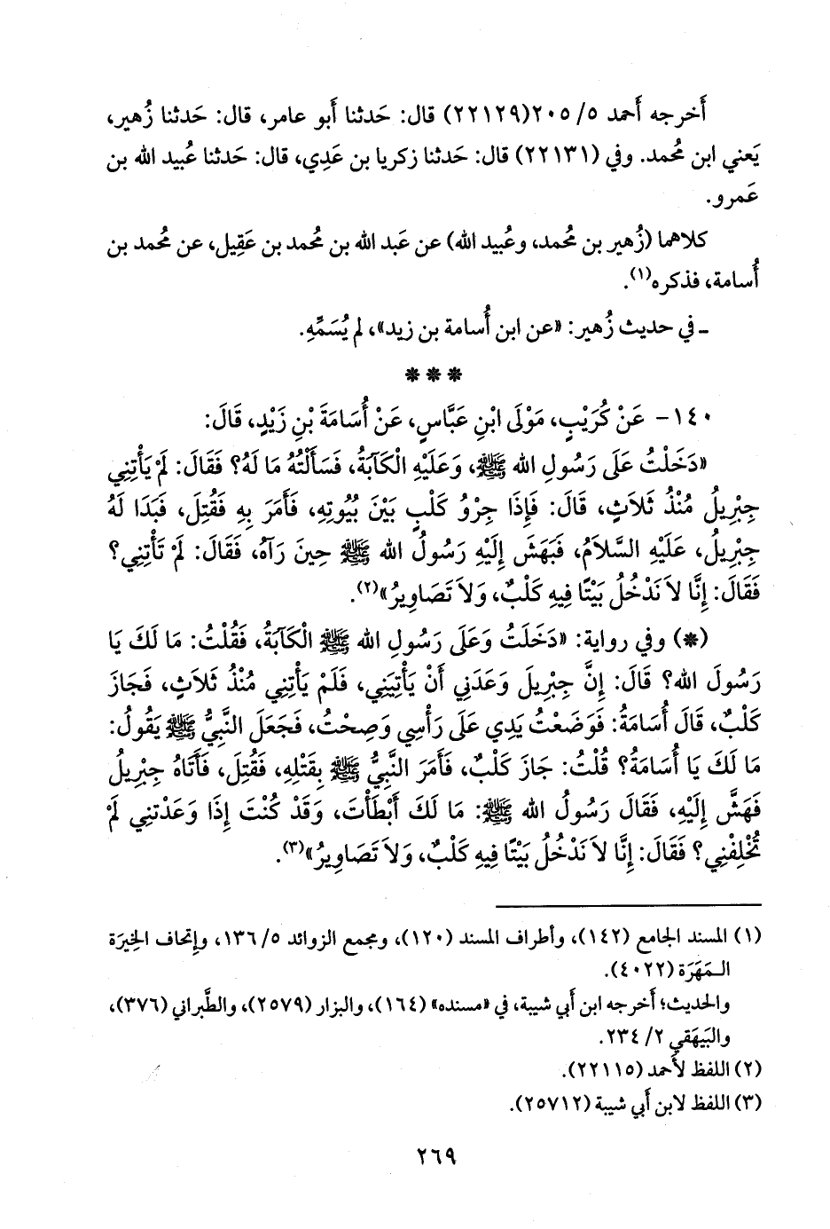 ١٤٠ - عن كُريب مولى ابن عباس، عن أُسامة بن زيد، قال: